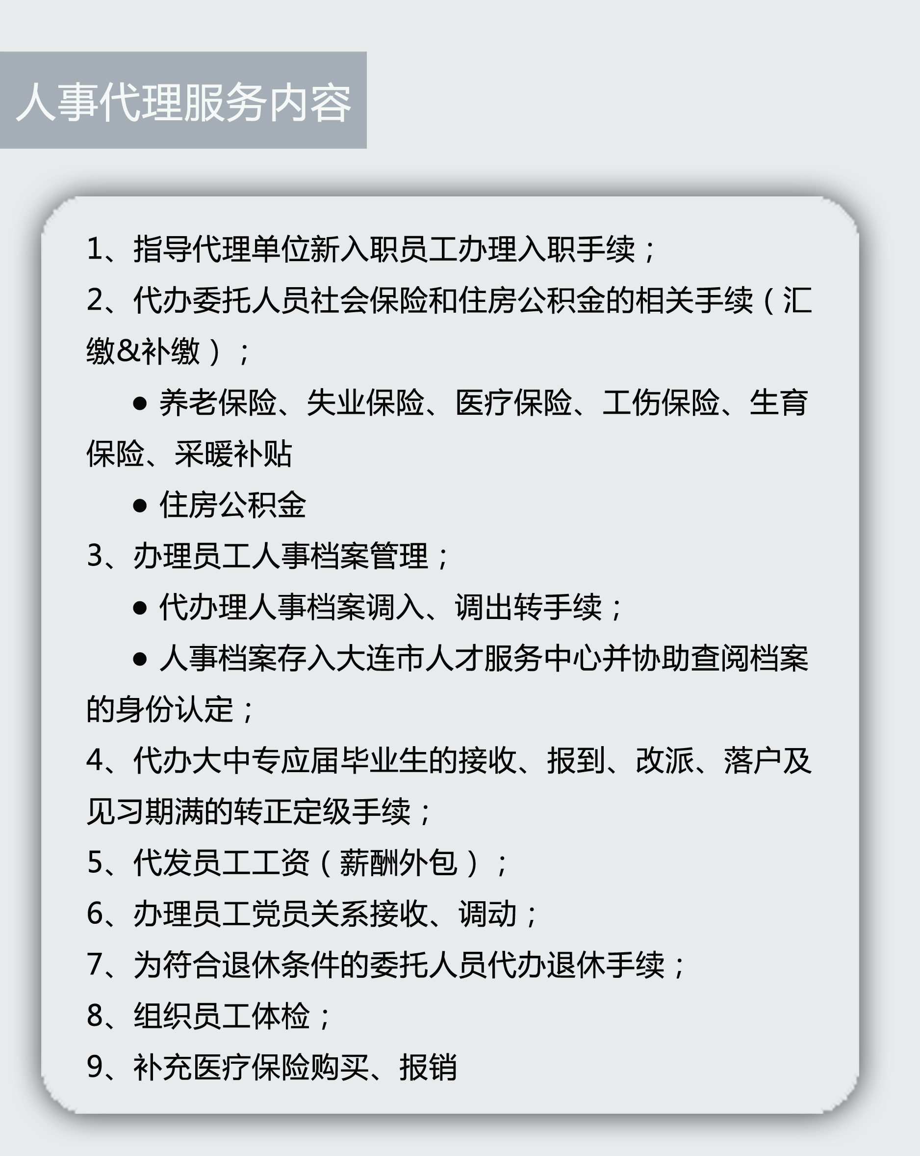 我們面向企業(yè)提供以下專業(yè)的人事代理服務(wù):